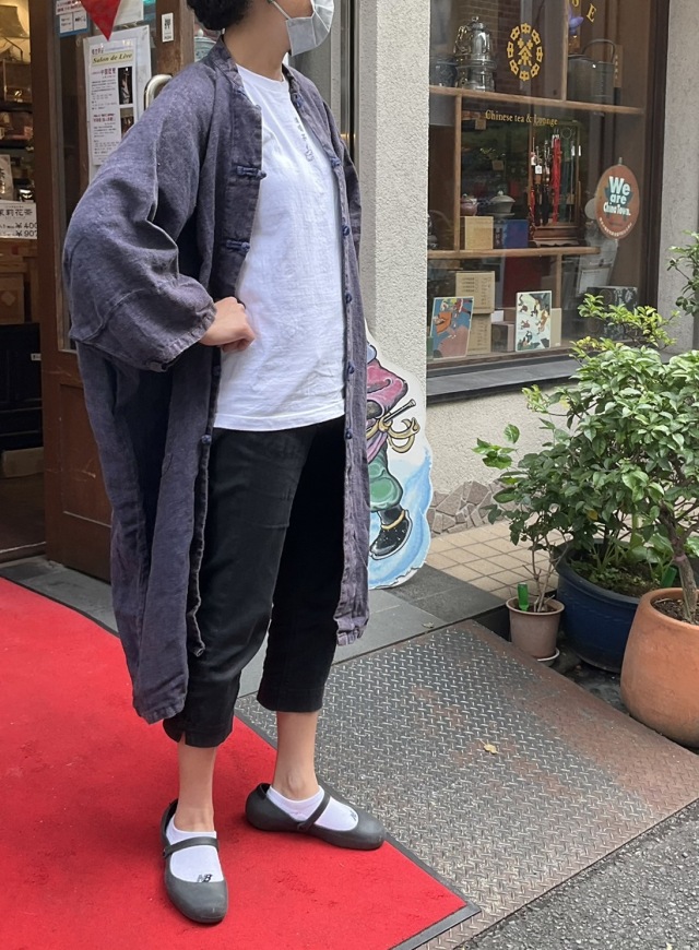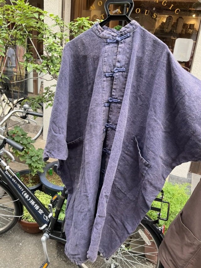 麻100%なので、見た目より軽くさらっとした生地です。重ね着にぴったり。