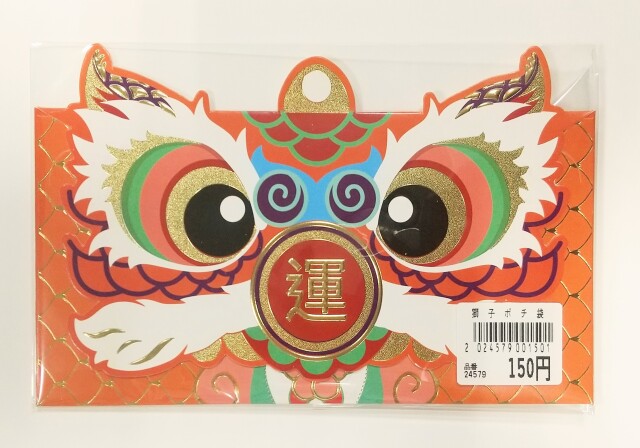 3. オレンジ獅子紅包「運」(1枚入り) 17cmx11cm