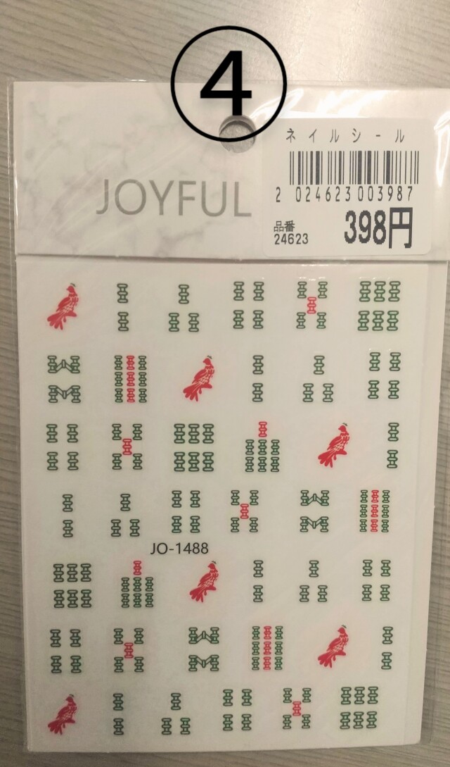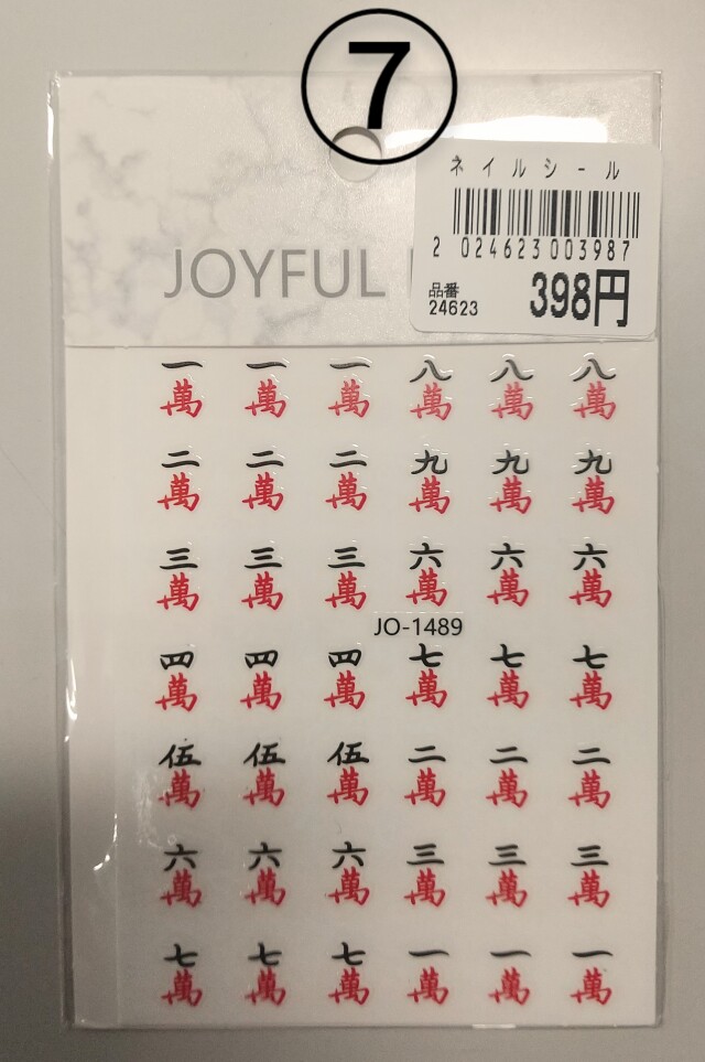 TOP雑貨(クッション、ミニチュアなど) 中国ネイルシールA《全7種》 通常販売価格: ¥398(税込) ~ ¥500(税込) 価格: ¥398 (税込) ~ ¥500 (税込) 販売期間: 数量: 個 商品番号通常販売価格価格在庫購入1 獅子舞 顔¥500(税込)¥500(税込)○ 2 獅子舞 いろいろ¥500(税込)¥500(税込)× 3 パンダ¥450(税込)¥450(税込)× 4 ソウズ¥398(税込)¥398(税込)○ 5 ピンズ¥398(税込)¥398(税込)○ 6 字牌¥398(税込)¥398(税込)○ 7 萬子¥398(税込)¥398(税込)○ 商品番号通常販売価格価格在庫購入1 獅子舞 顔¥500(税込)¥500(税込)○ 2 獅子舞 いろいろ¥500(税込)¥500(税込)× 3 パンダ¥450(税込)¥450(税込)× 4 ソウズ¥398(税込)¥398(税込)○ 5 ピンズ¥398(税込)¥398(税込)○ 6 字牌¥398(税込)¥398(税込)○ 7 萬子¥398(税込)¥398(税込)○ 返品期限・条件 中国ネイルシールです。 お獅子や麻雀牌の柄など、日本ではあまり見かけない かわいいデザインです。