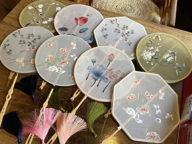 中国・蘇州の豪華な伝統工藝品「宮扇」(宮廷団扇)です。